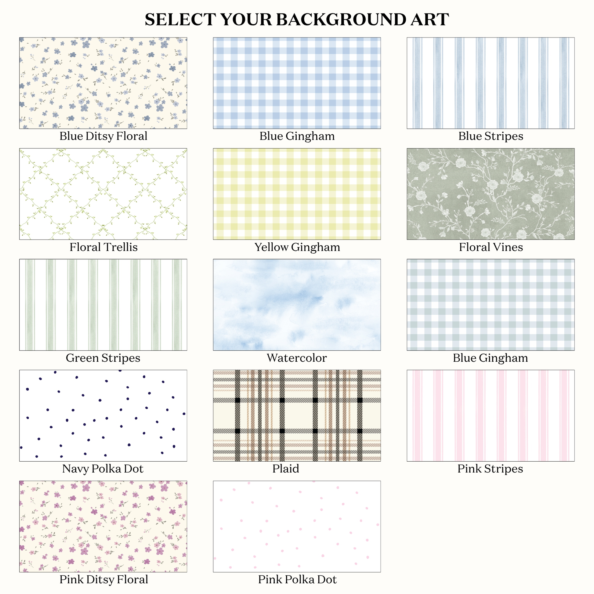 Select from fourteen artfully designed backgrounds that reflect your aesthetic and capture the spirit of your occasion.