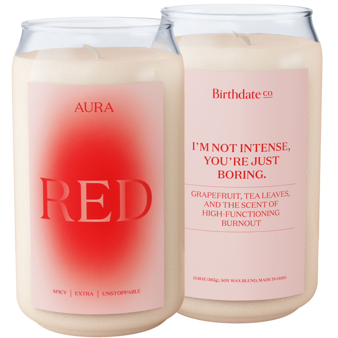 A lighthearted candle with a vibrant fragrance and radiant aesthetic that matches your aura. Celebrate, manifest or recharge your aura with a candle that's playful, bold and a little too accurate.