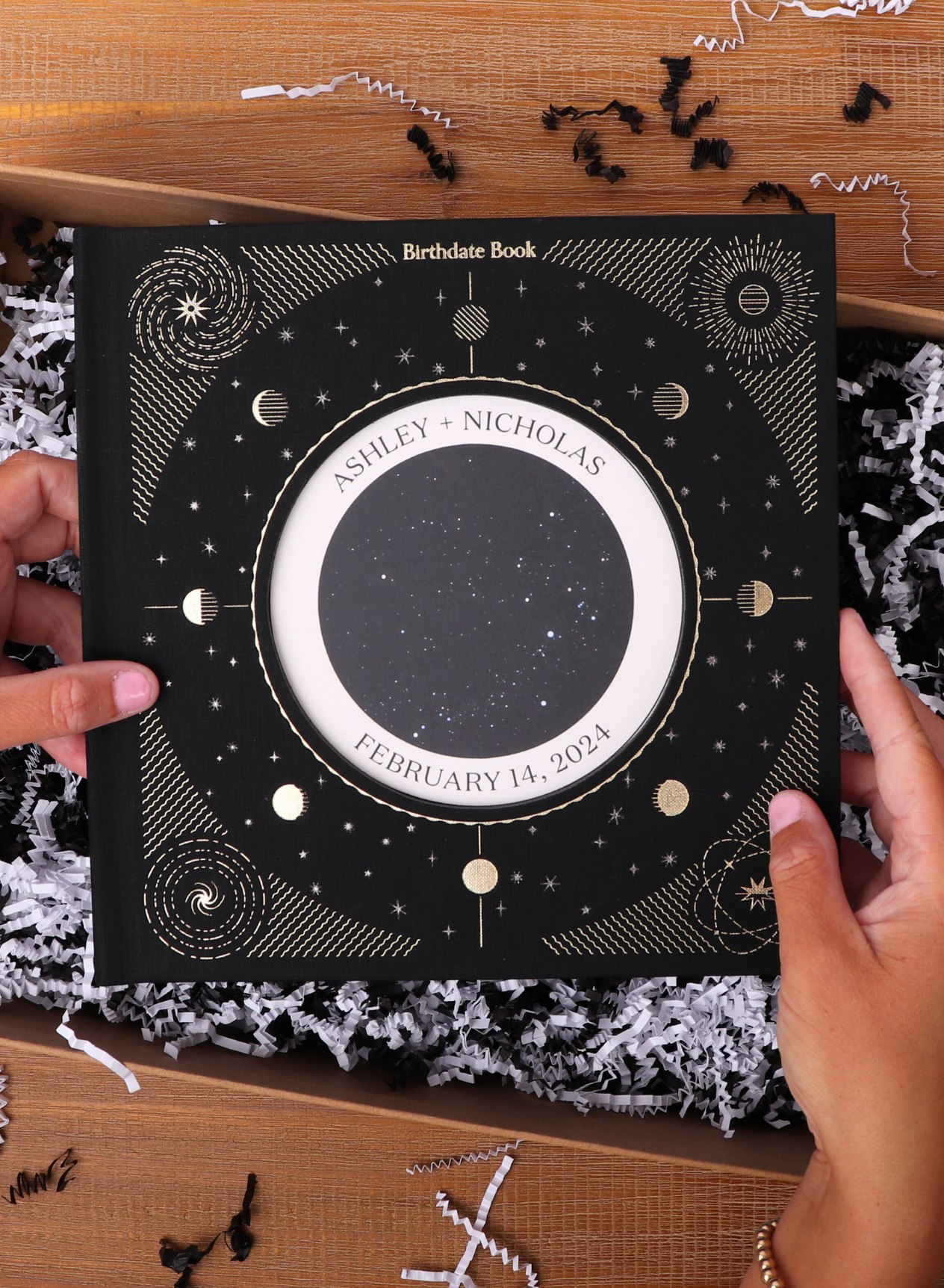 The Birthdate Book is 8 inches x 8 inches - perfectly sized to display on your coffee table or desk!