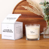 A substantial glass vessel houses 13 oz of non-toxic soy wax that offers a clean, even burn for up to 40 hours. Each candle comes in a striking gift box.